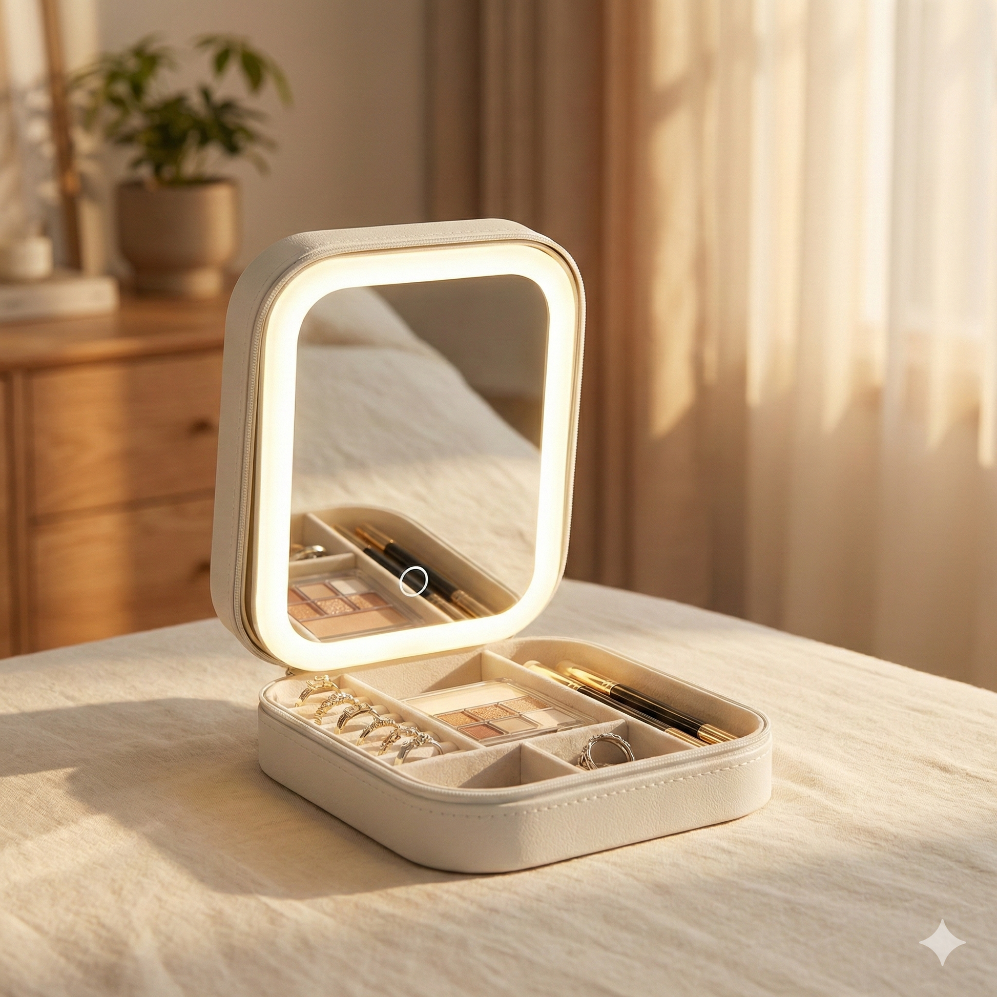 The integrated soft LED light mirror gives you clear, natural illumination, making it perfect for makeup touch-ups, skincare, or selecting jewelry even in low-light environments.